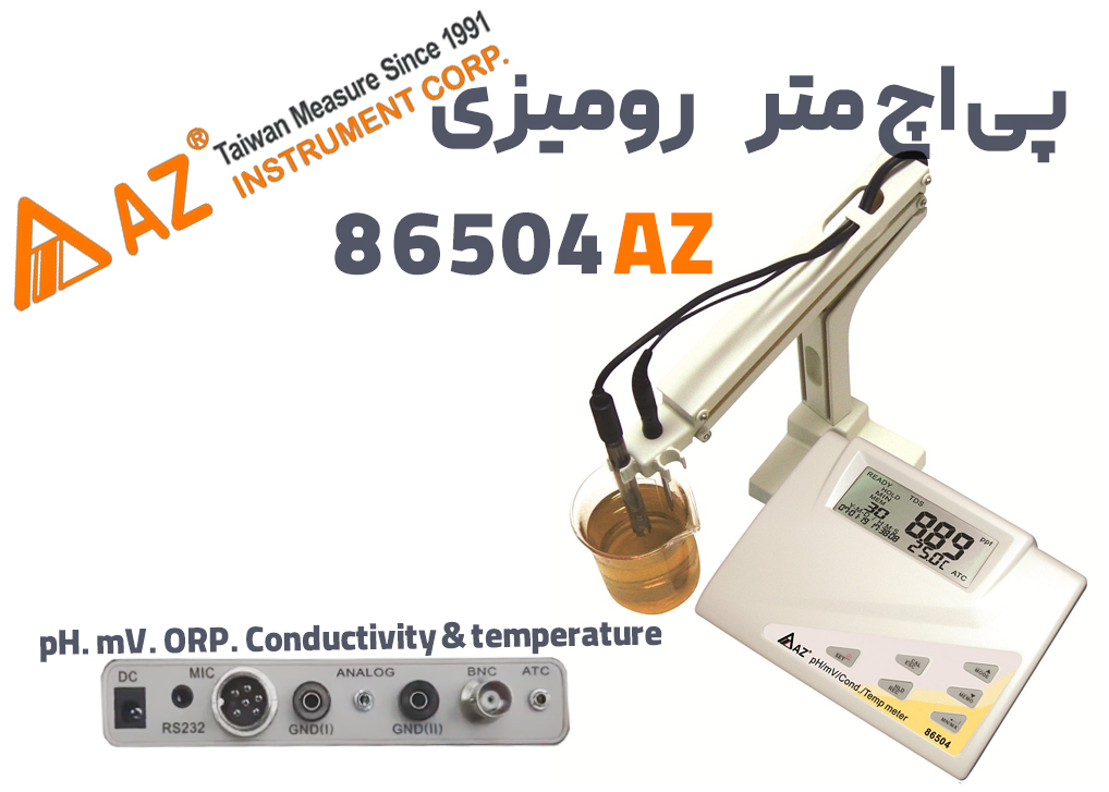 دستگاه پی اچ متر رومیزی AZ 86504 یک ابزار دقیق و چندمنظوره برای سنجش کیفیت آب است که امکان اندازه گیری pH و ORP و mv و EC و دما را فراهم می کند.