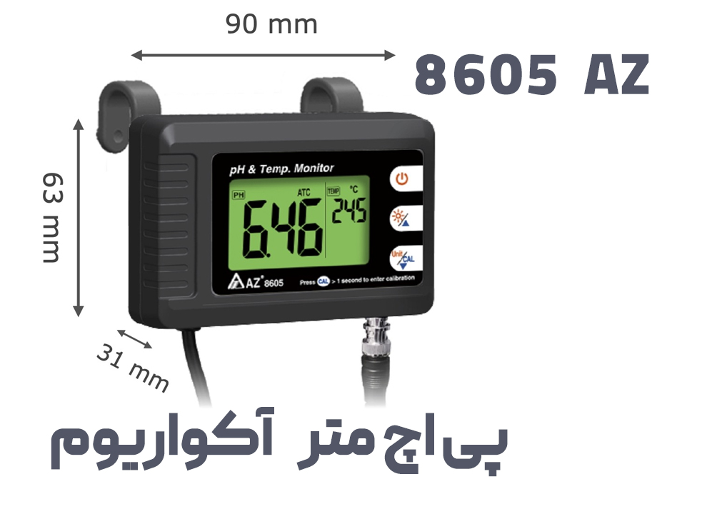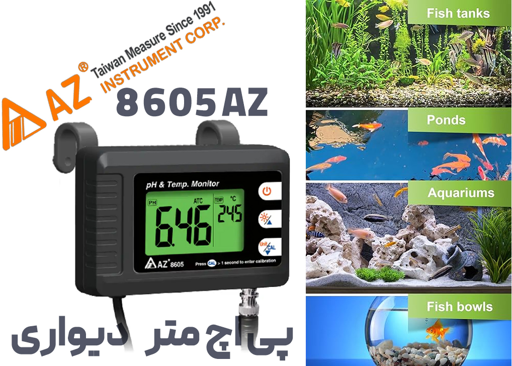 pH متر آکواریوم AZ 8605 یک دستگاه مانیتور دقیق و کاربردی برای اندازه گیری پی اچ و دما در بازه ی 0 تا 14 است.