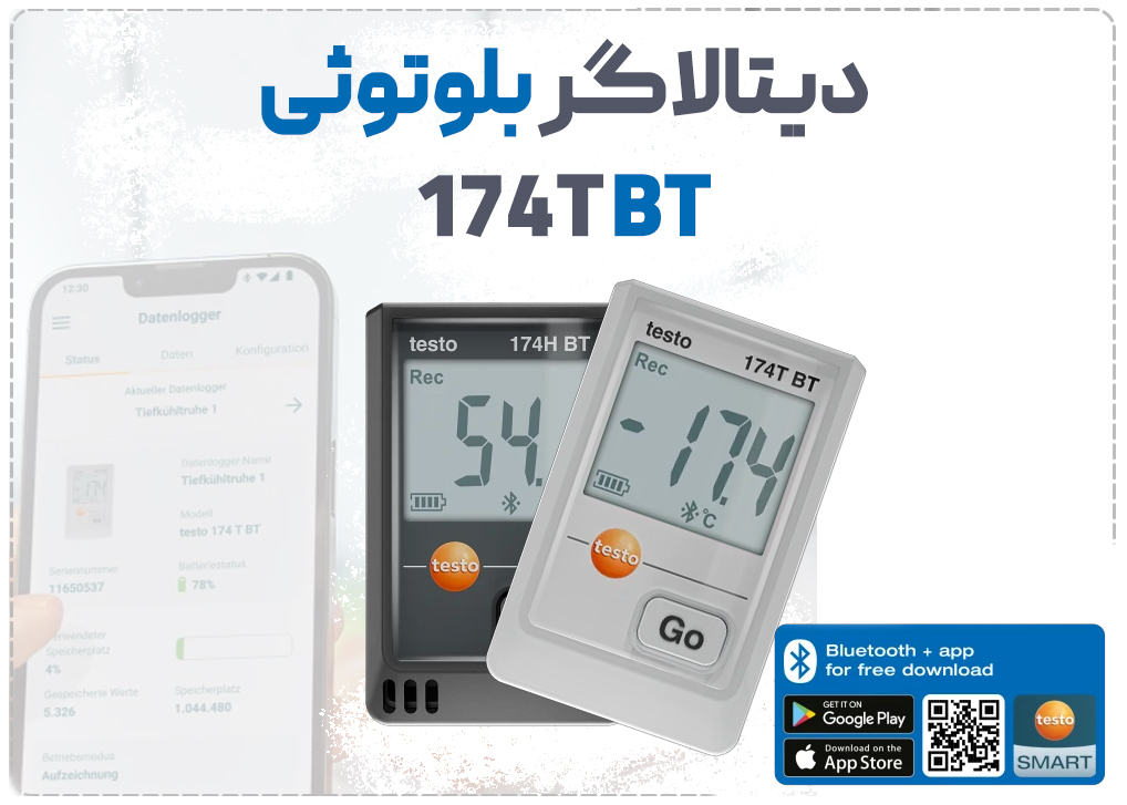 دیتالاگر دما بلوتوث دار Testo 174T BT در دو رنگ مشکی و سفید به ترتیب با استانداردهای EN 12830 و HACCPابزاری ایده آل برای پایش دما در انبار مواد غذایی، بازرسی و نگهداری سیستمهای HVAC/R و همچنین نظارت آسان بر شرایط آب وهوای داخلی ساختمان است. دستگاه دیتالاگر 174T BT قادر است دمای محیط را در بازه منفی 30 تا 70 درجه سانتی گراد با دقت بالا اندازه گیری کند. به لطف تکنولوژی بلوتوث، امکان خواندن داده ها از فاصله ی 30 متری از محل اندازه گیری فراهم است. پشتیبان گیری خودکار در زمان کاهش یا تعویض باتری و اپلیکیشن رایگان Testo Smart App با قابلیت گزارش گیری، مستندسازی و خروجی داده ها به دلخواه کاربر بر اساس الزامات و استانداردهای قانونی از جمله ویژگی های این سری از محصولات جدید کمپانی تستو است.